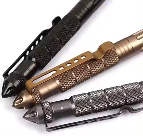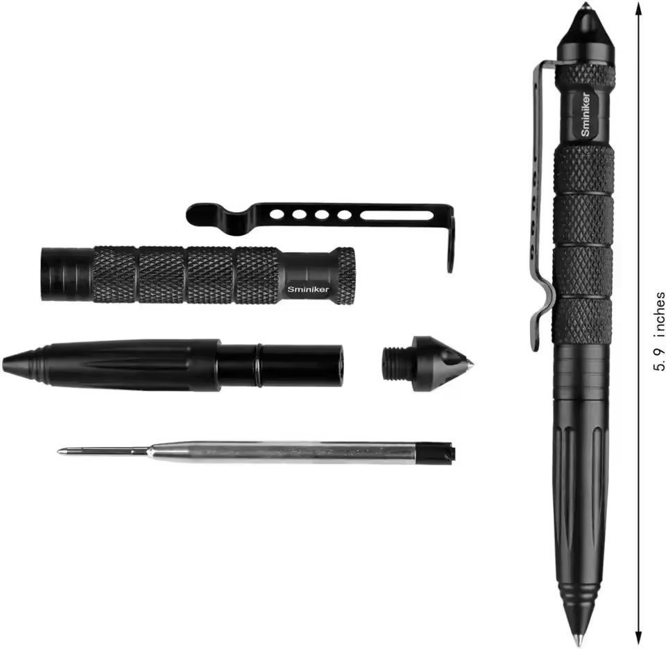 The tactical pen cap is made of tungsten steel, and the pen body is made of aerospace grade aluminum, which has excellent strength and portability. Break the window to escape in an emergency. Hidden, low-key, unique attackers can suddenly have amazing attack capabilities. A comfortable tactical pen with a round nib. Suitable for everyday use or emergency situations. Suitable for everyday use, travel or outdoor activities. Head design, handle thread design, excellent slip resistance. 5.9" L x 0.51" W