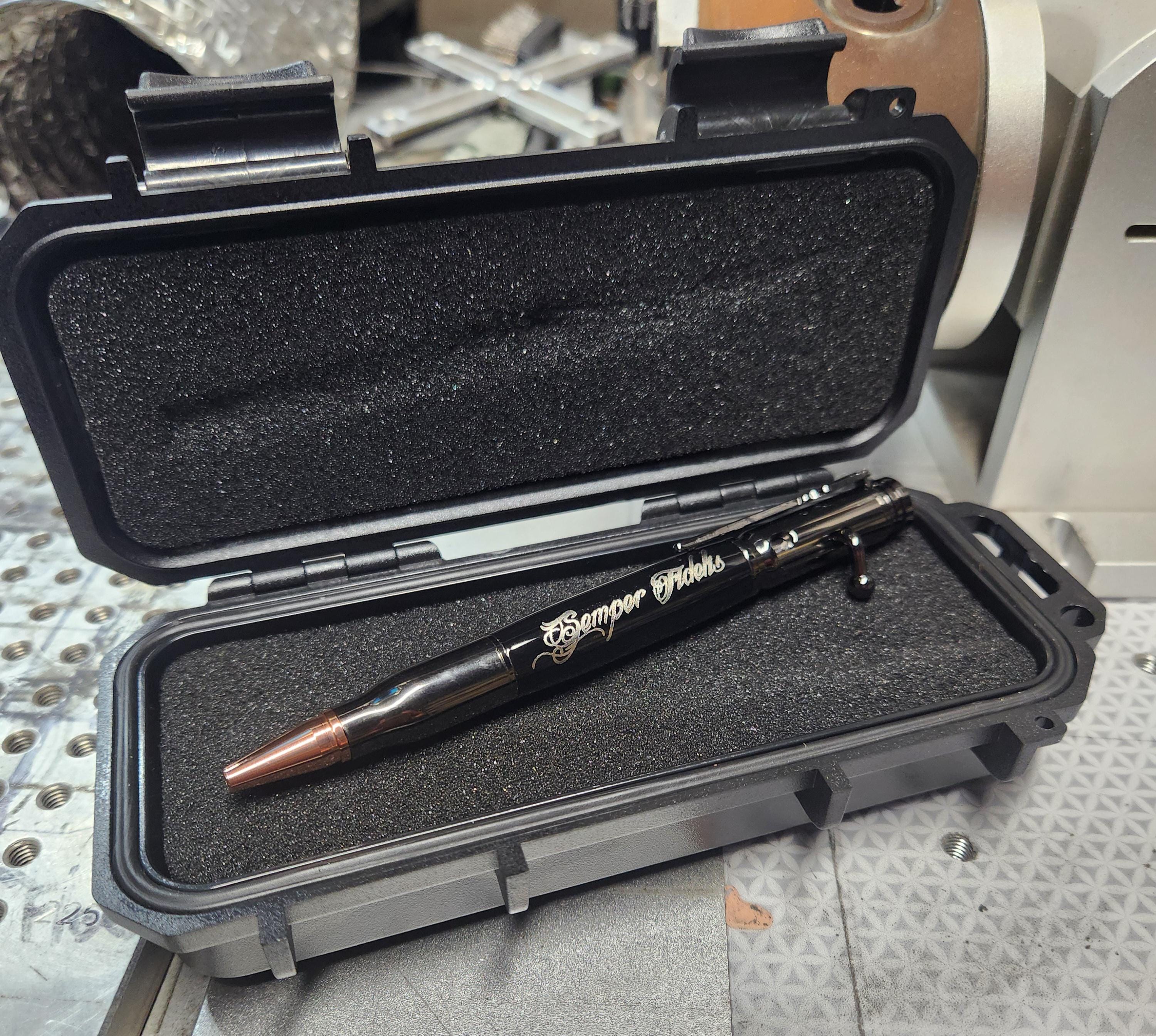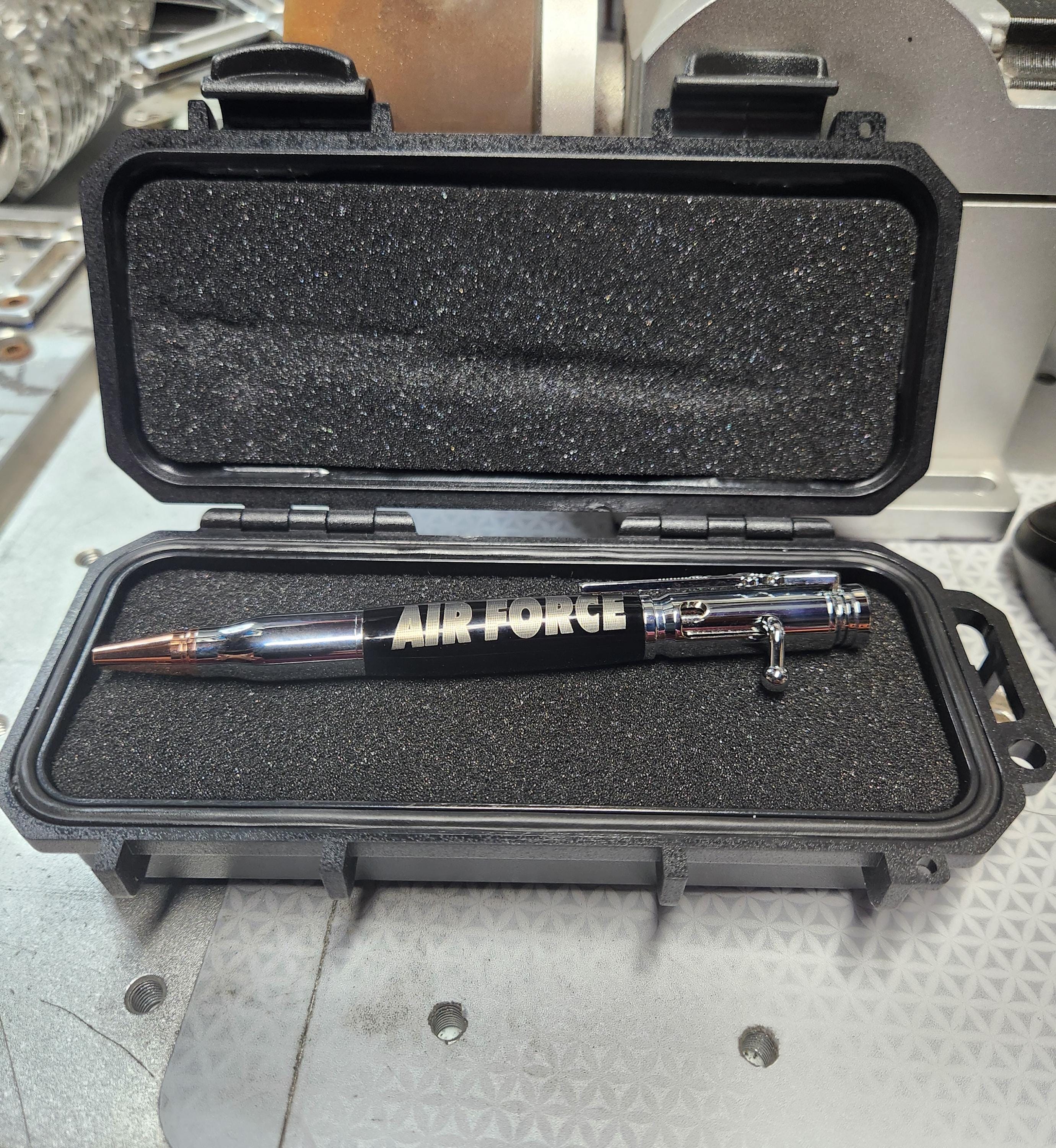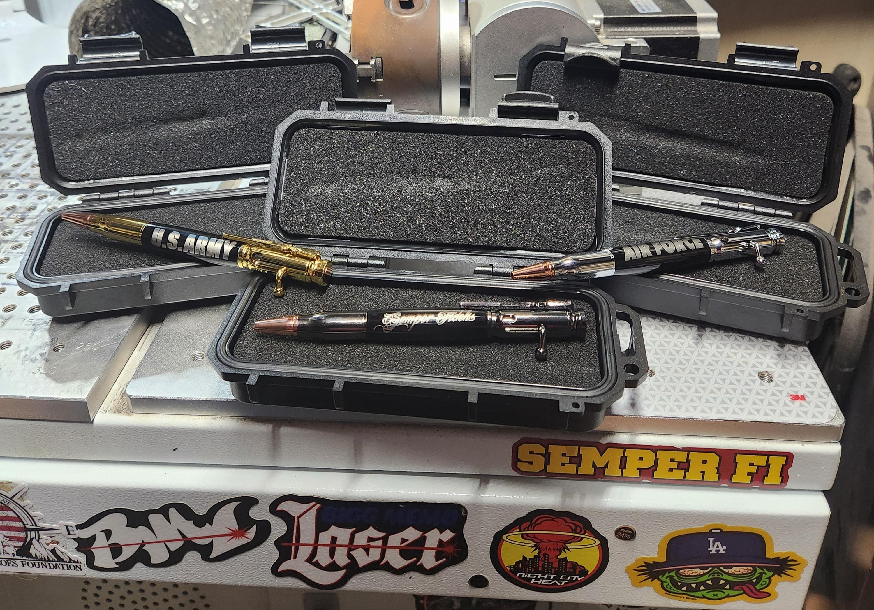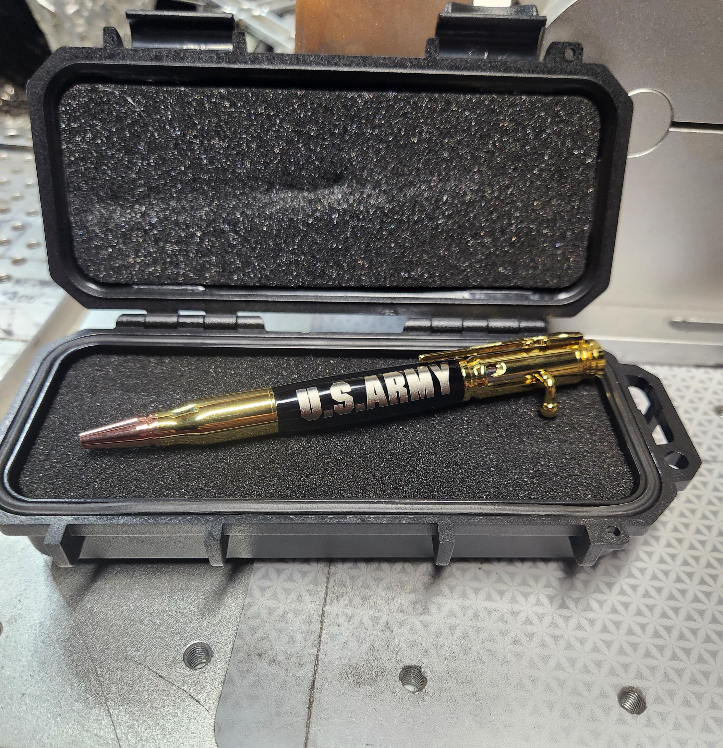 Bolt Action Ballpoint Pen with Polymer Case (Custom Laser Engraved) Gold, Silver, Dark Gray. Use: This rifle ball pens measure about 5.5 inches/ 14 cm, suitable for you to grab and hold, not easy to fall, the pen point is about 0.04 inches/ 1 mm in diameter, pen gift box is about 6.89 x 3.23 x 1.54 inches/ 17.5 x 8.2 x 3.9 cm, suitable and compact, to add more color to your life Sturdy and Long Lasting Material: our pen case is made of plastic material and this bullet pen adopts metal material, retractable and long lasting, not easy to break or fade, lightweight and reliable, which can make them look delicate even after long use Fluent Writing Experience: our bolt action pen features a streamlined design, handy to grip and not easy to slip when held, providing you with a fluent writing experience, equipped with a side clip, which can be firmly attached to your notebook and notepad, portable and stylish